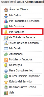 Una vez logueado, en el menu izquierdo podra ver la opcion "Mis Facturas":