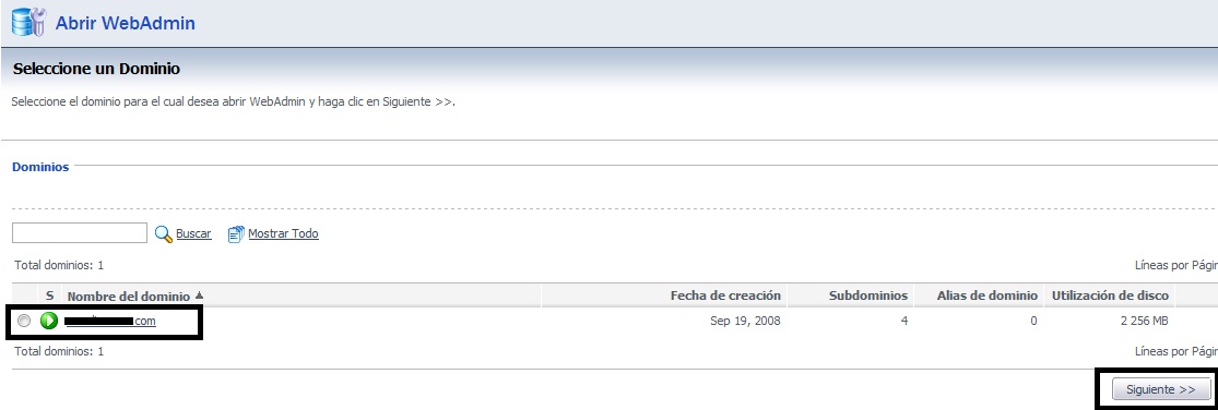 5) Pulse finalizar y se abrira webadmin o phpmyadmin para editar su base de datos. Tenga en cuenta que se puede bloquear el popup.