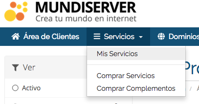 1) Entra con tus datos en el área de clientes (https://www.mundiserver.com/manager/clientarea.php)